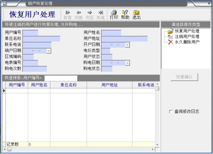 ,鼠標左鍵“銷戶恢復(fù)處理”,出現(xiàn)以下對話框: