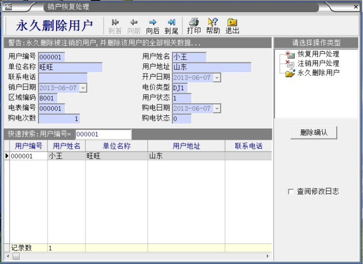 預(yù)付費電表系統(tǒng)管理者,在平時的操作中經(jīng)常會遇到需要刪除用戶,小編在接下來通過圖片和文字詳細介紹這方面的操作。