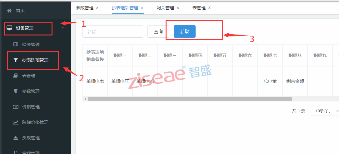 點擊設備管理,再點擊表管理