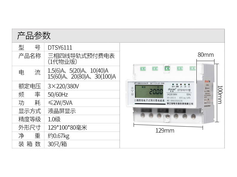 DTSY6111型三相導(dǎo)軌式預(yù)付費(fèi)電能表(7P)
