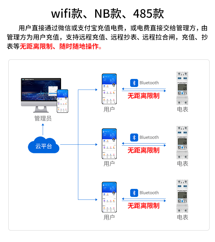 本公司DDSY6111/DDZY6111遠(yuǎn)程智能電表與本公司遠(yuǎn)程抄表系統(tǒng)和手機(jī)APP配套使用,遠(yuǎn)程抄表管理系統(tǒng)具有實(shí)時(shí)抄表、定時(shí)抄表外,還提供了設(shè)備管理功能,如告警、余額短信通知、遠(yuǎn)程充值、手機(jī)抄表、手機(jī)查詢、手機(jī)充值、預(yù)付費(fèi)、后付費(fèi)、自助充值機(jī)充值、遠(yuǎn)程拉合閘、各種查詢報(bào)表、統(tǒng)計(jì)報(bào)表下載等功能。