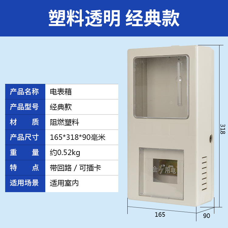 一我公司研發(fā)透明防竊電智能電表箱,產(chǎn)品采用聚碳酸酯(PC)制成,用電安全保護(hù)、用戶分離控制、數(shù)據(jù)采集等功能,提高電表箱防竊電可靠性、元件集成度、用電安全性和安裝操作方便性,支持電子式、智能IC卡預(yù)付費(fèi)式。