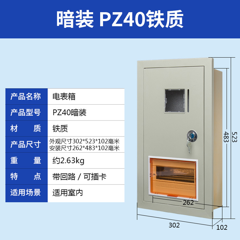 我公司生產(chǎn)的PZ40電表箱采用0.5-1mm厚冷軋鋼板和進(jìn)口PC高透視窗,并帶有門鎖,安全防盜,大氣美觀。可安裝各類電能表和C45、空氣開(kāi)關(guān)、斷路器閘刀等,廣泛用于家庭、公寓、學(xué)校、工廠等場(chǎng)所。