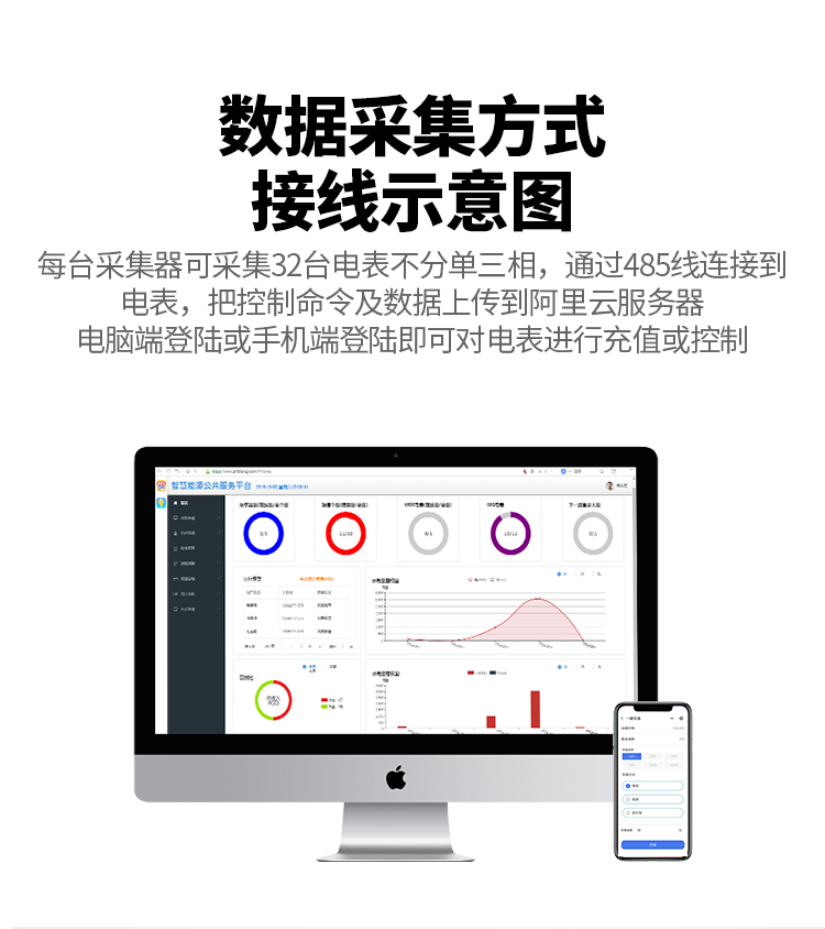 本公司DDSY6111/DDZY6111遠程智能電表與本公司遠程抄表系統和手機APP配套使用,遠程抄表管理系統具有實時抄表、定時抄表外,還提供了設備管理功能,如告警、余額短信通知、遠程充值、手機抄表、手機查詢、手機充值、預付費、后付費、自助充值機充值、遠程拉合閘、各種查詢報表、統計報表下載等功能。
